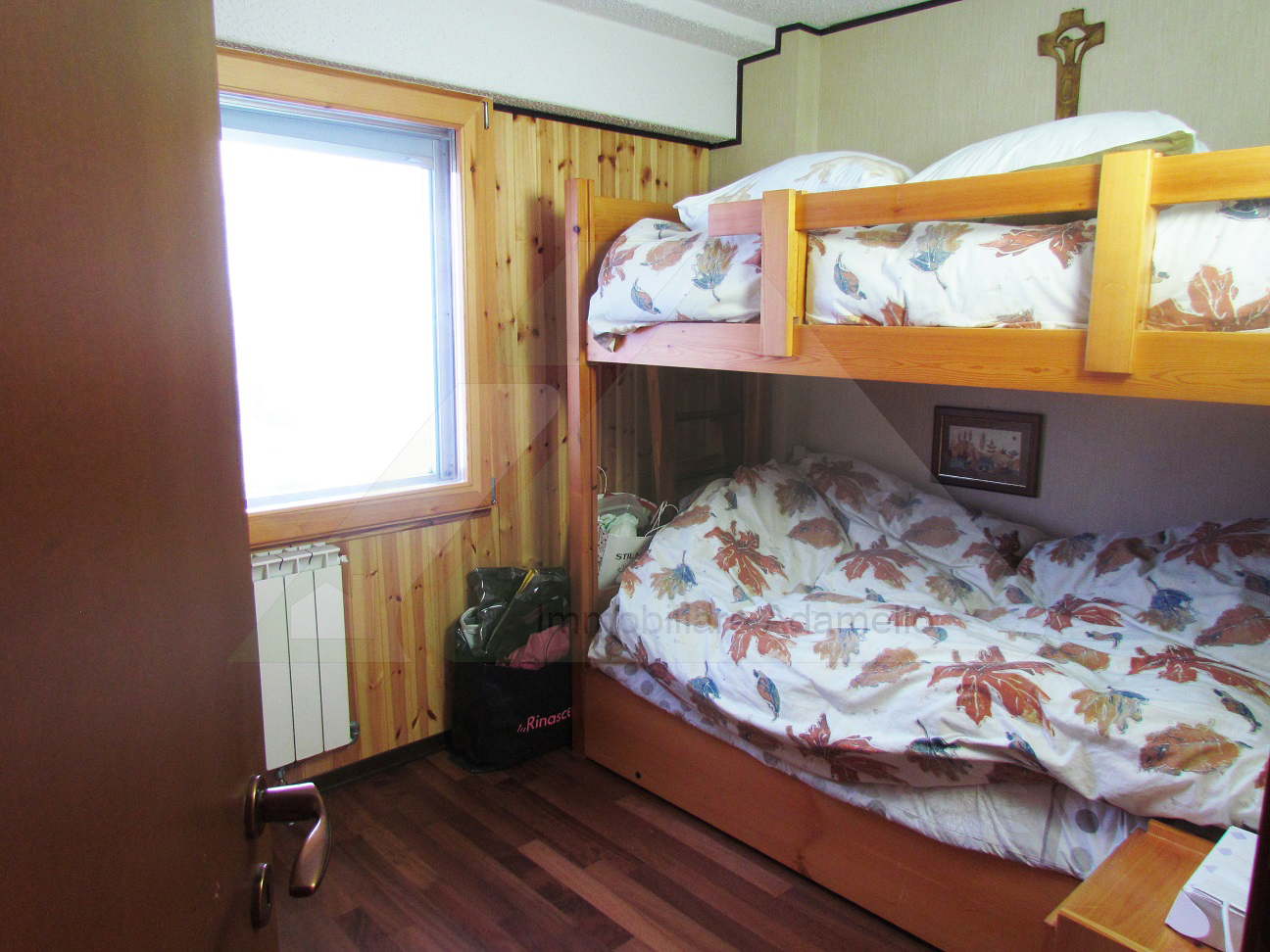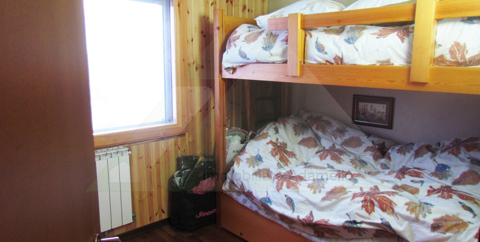 Accogliente appartamento quadrilocale, posto al piano quarto, composto da due zone giorno con rispettivi angoli cottura, camera matrimoniale, camera con letto a castello, guardaroba e due bagni. Completa la proprietà il piano seminterrato con due cantine e un posto auto coperto. Ottima esposizione sulle piste da sci e sulle montagne circostanti.